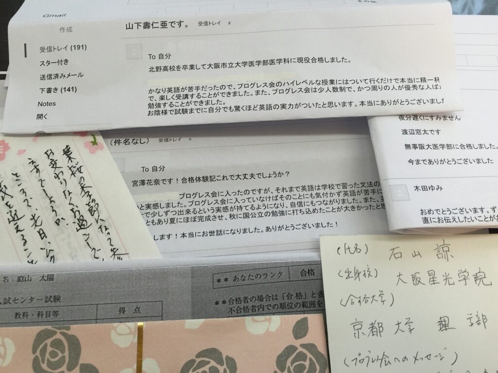 3月の合格発表から4月いっぱい、当会卒業生からあいさつやお手紙、メールなどをいただきました。
